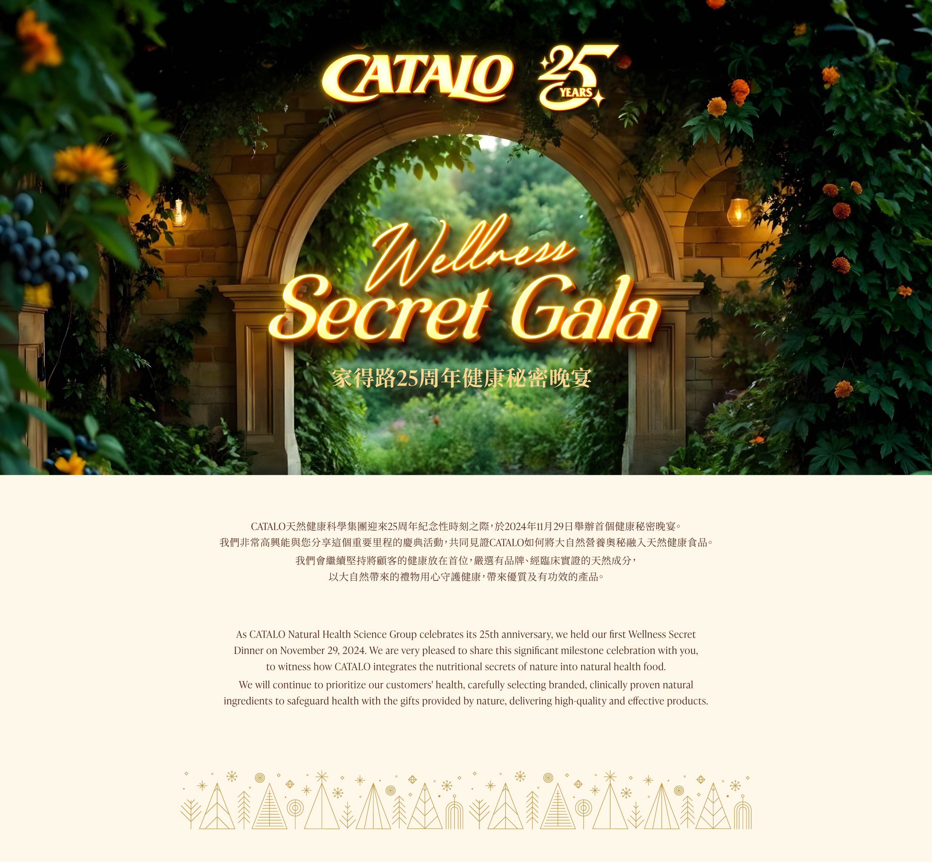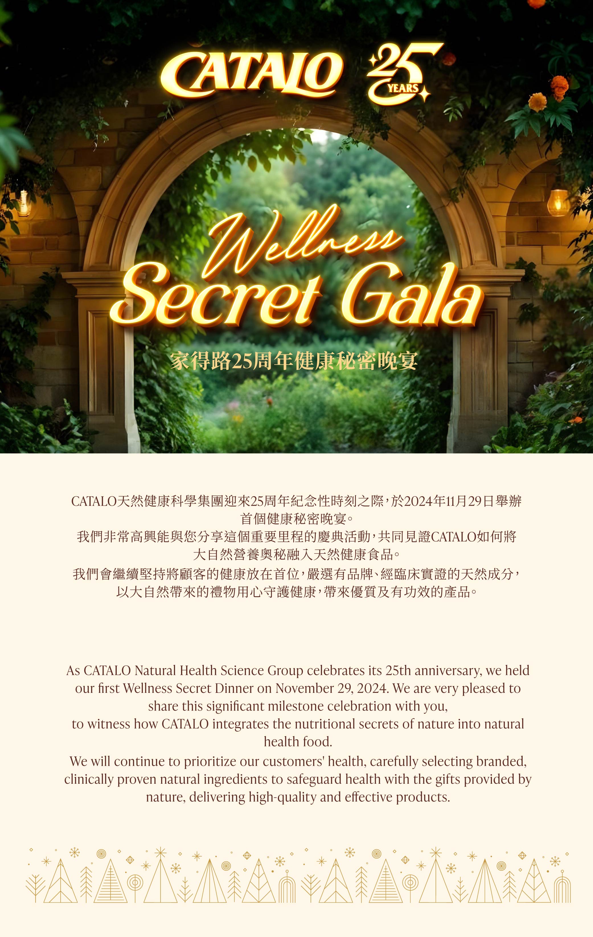 CATALO has been dedicated to providing essential nutrition for different life stages over the years, focusing on developing and producing high-quality natural health foods, earning an excellent reputation, which includes our best-selling product series - NMN, Eye Care, Joints& Bones and Kids series product. CATALO will launch a series of 25th-anniversary events and offers to thank customers for their years of trust.