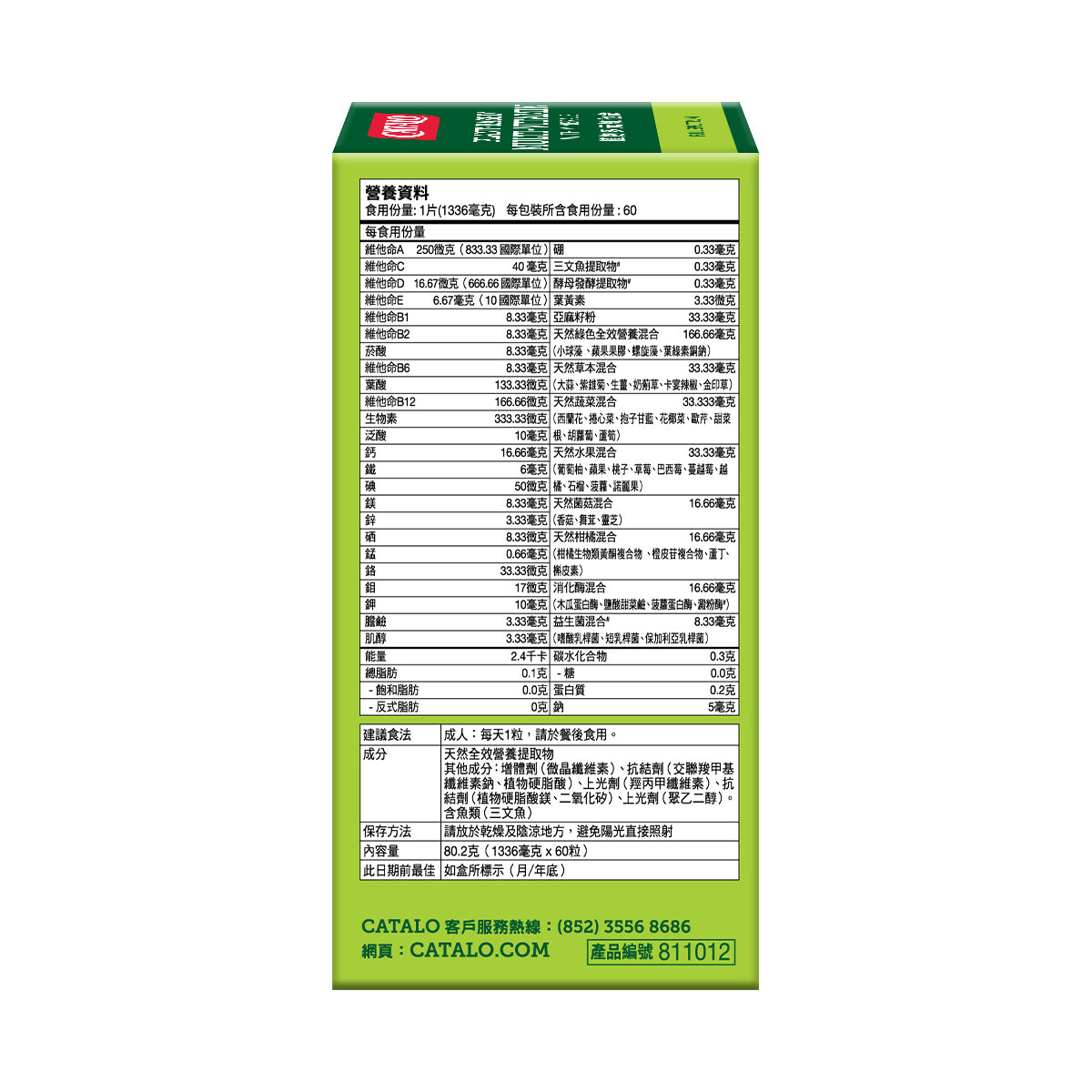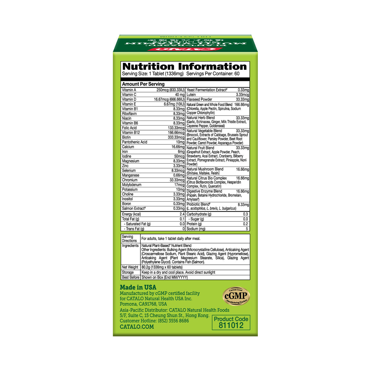 Specially designed formula with plant-based multivitamin and minerals, which contains 39 fruits, vegetables, mushrooms and herbs. It provides 25 kinds of Vitamins and minerals from Vitamin A to Zinc, supporting an active lifestyle, stress management and immune health.