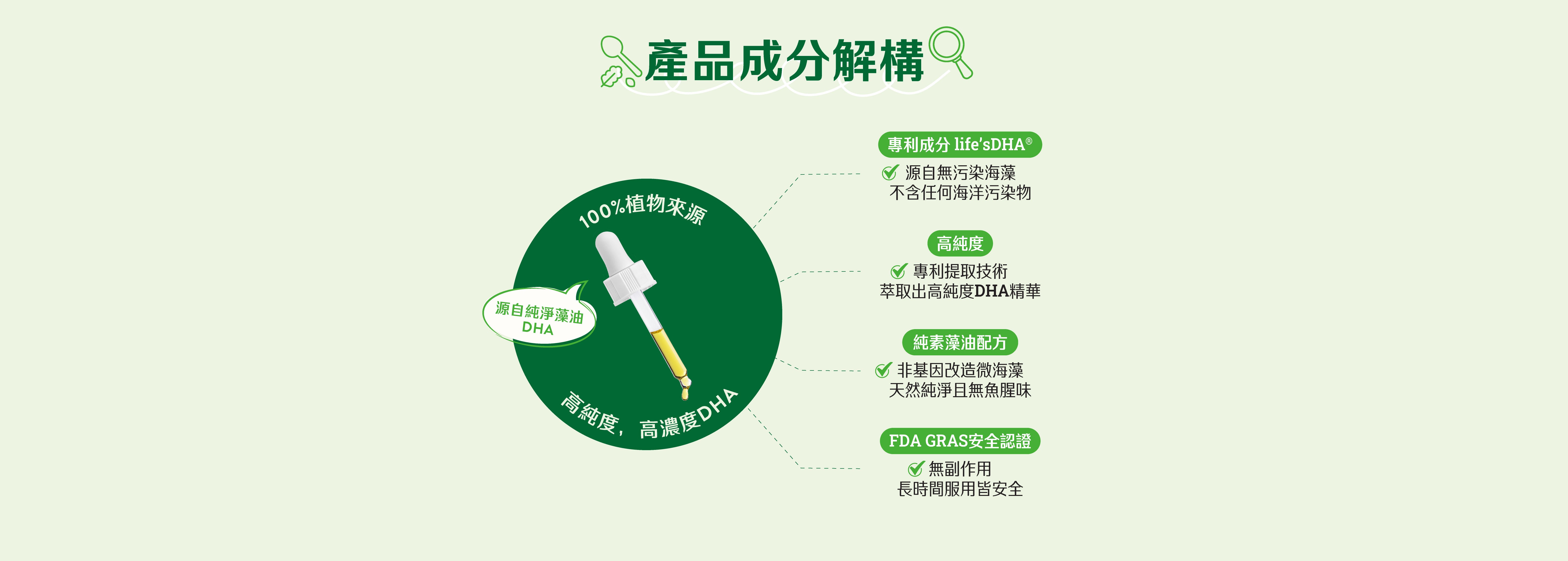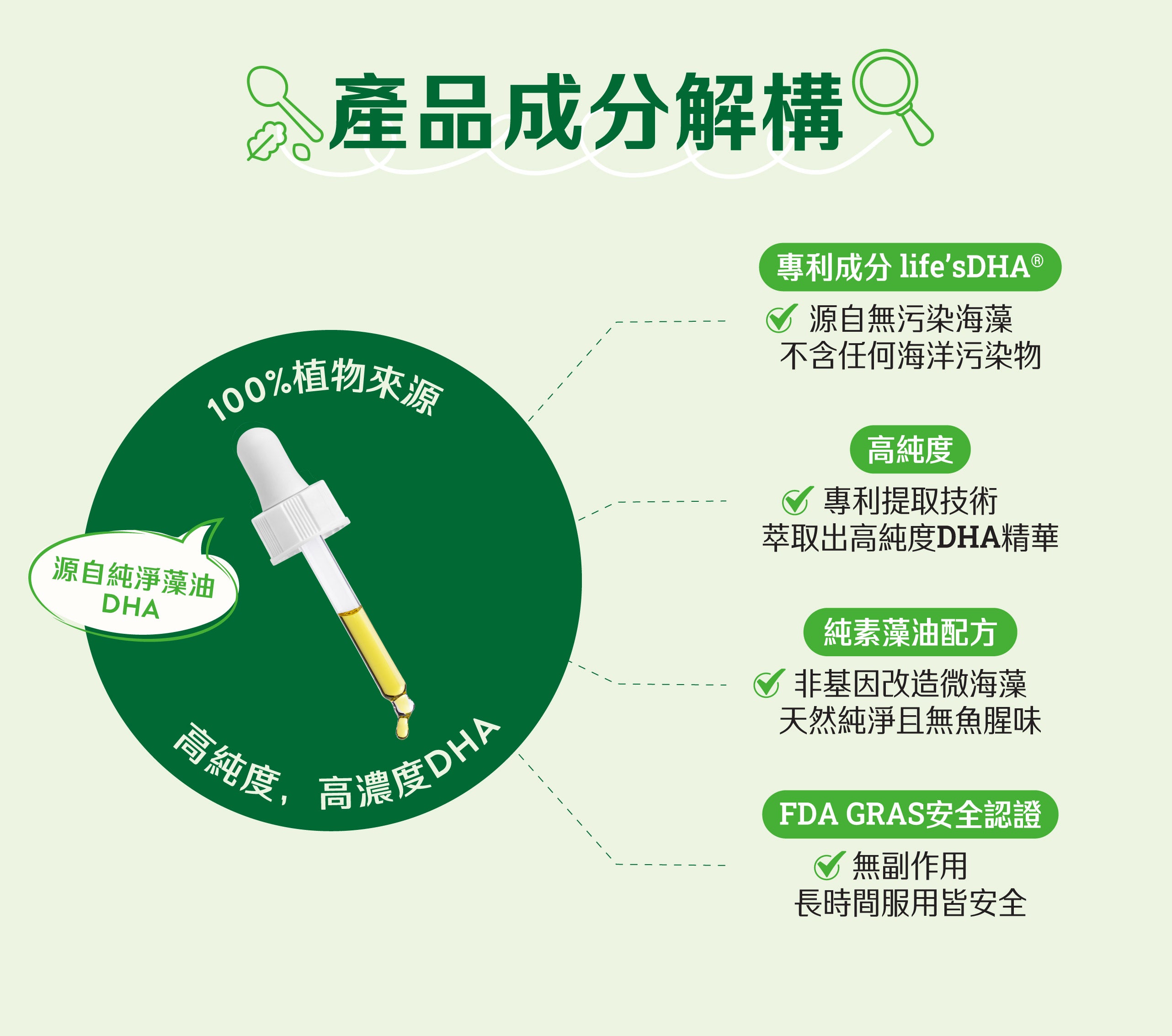 采用美国 FDA GRAS 安全认证的 Life’s OMEGA® 植物藻油,100% 植物来源,无重金属及鱼类成分。富含高纯度 Omega‑3,临床实证有助稳定情绪,促进婴幼儿脑部及智力健康发展。