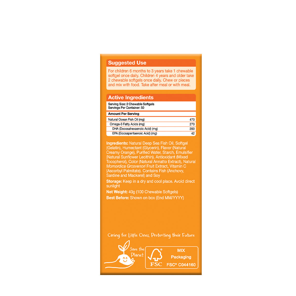 特选优质天然无污染深海小型鱼,采用独特先进科技保留纯净营养物质DHA及EPA,获IFOS优质认证