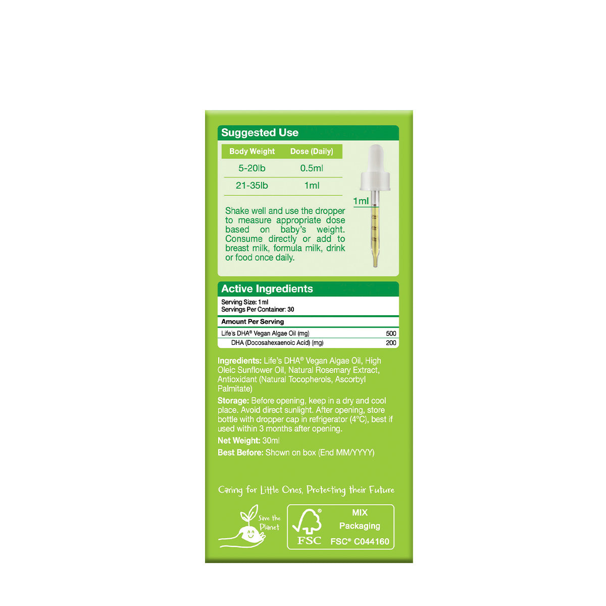 請充分搖勻後,使用滴管依嬰兒體重取適當劑量。每日一次,可直接食用,或加入母乳、配方奶、飲品或食物中。